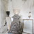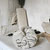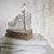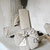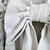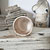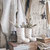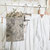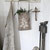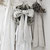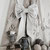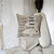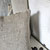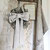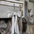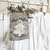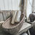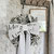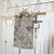 Auf der Vorderseite ist kleiner Stiefel aus antikem greigefarbenem Leinen angehängt.