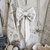 Auf der Vorderseite ist kleiner Stiefel aus antikem beigefarbenem Leinen angehängt.