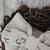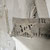Auf die Vorderseite ist TANNENBAUM aus antikem greigefarbenem Leinen apliziert.