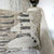Dieses Leinenkissen haben wir auf der Vorderseite aus einem antiken und sehr dicken Getreidessack / Leinensack-Leinen um 1900 mit originaler Beschriftung 16 genäht. Die Leinenfarbe ist sehr schwer zu beschreiben: schlamm finde ich trifft es wohl am besten.