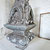 Das Fassadenlement ist aus Stuckgips, das auf Holz montiert ist (Bergezustand). Die Krampe haben wir eingeschlagen - so kann das Element auch ähnlich einer Wandkonsole angehangen werden!