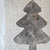 Auf der Vorderseite ist ein Tannenbaum aus greigefarbenem antikem Leinen aufgesetzt.