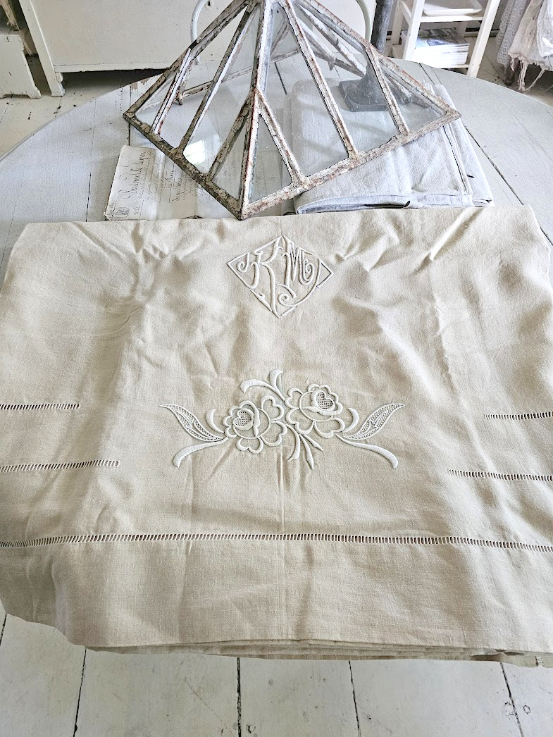 Das antike Leinen ist natürlich gewaschen und gebügelt und kann / wird Altersspuren, Fehler und Fehlstellen haben.