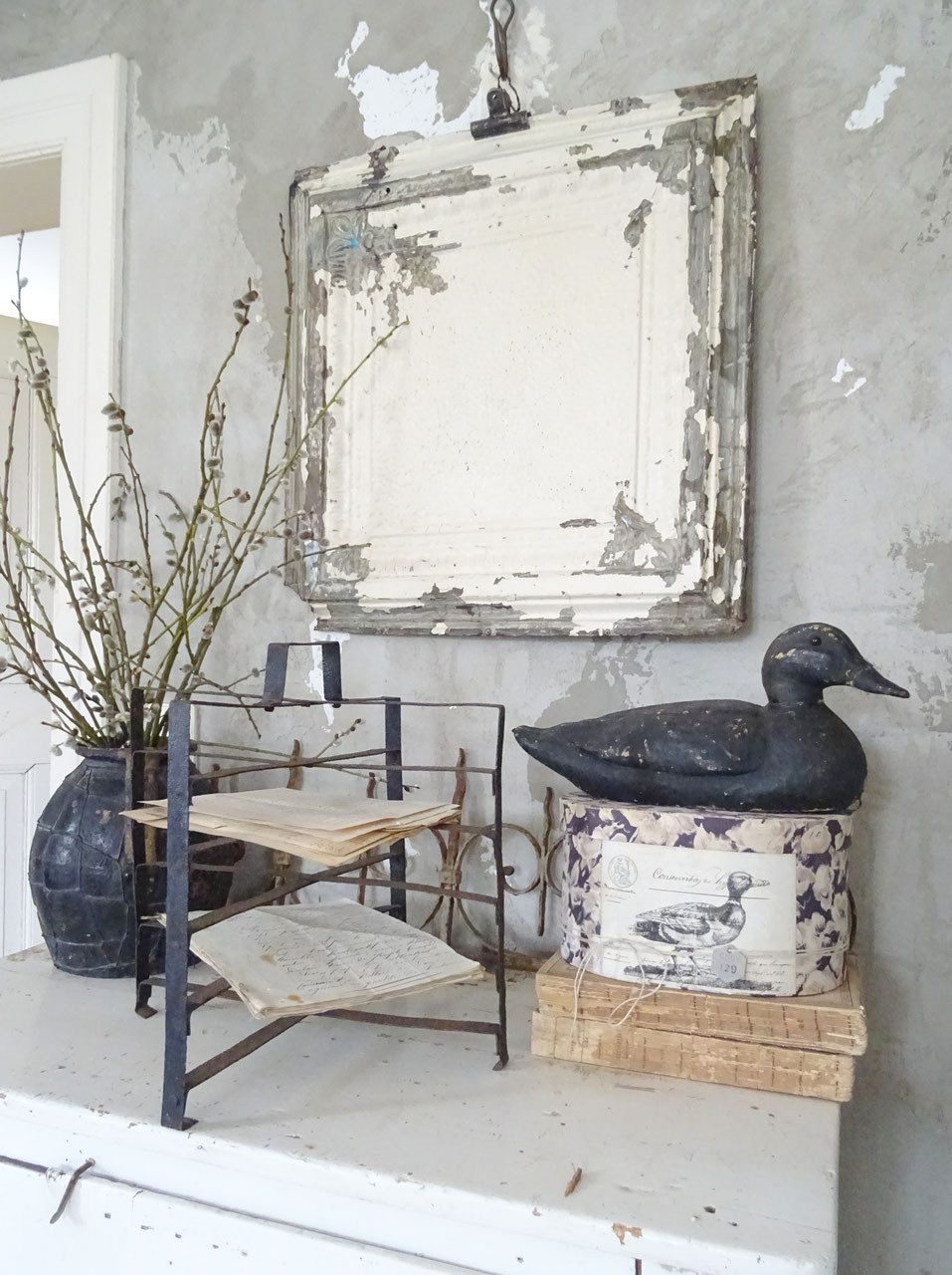 Diese uralte Lockente haben wir in Frankreich gefunden - noch aus Holz geschnitzt und entsprechend massiv und Schwer. Ich vermute, daß die Ente aus Eichenholz geschnitzt ist - mit alten weißen Anstrichen, die über die Zeit eine schöne Patina angenommen haben.