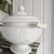 Diese wunderschöne und sehr GROSSE antike Terrine in einer herrlichen Pokalform hatten wir aus Frankreich mitgebracht - ein Traumteil aus sahneweißer Keramik mit außergewöhnlich schön gearbeiteten Griffen an der Terrine . Gefertigt ist die Terrine allerdings in Holland, wie man am Stempel unten im Fuß erkennen kann . s. Foto
